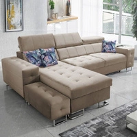 Narożnik z funkcją spania Cetara II beżowy prawostronny stylowy design przesuwane oparcia regulowane zagłówki i pojemnik na pościel