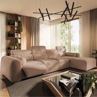 Narożnik z funkcją spania Castel II błękitny lewostronny komfortowy narożnik z regulowanymi zagłówkami pojemnik na pościel