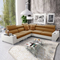 Narożnik z funkcją spania Luigi VII miodowy prawostronny komfortowy narożnik rozkładany utrzymany w nowoczesnej formie