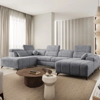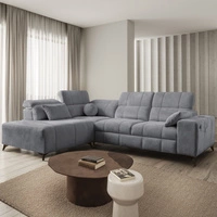 Narożnik z funkcją spania Penejos VII szary lewostronny stylowy narożnik z pojemnikiem na pościel wygodne regulowane zagłówki