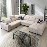 Narożnik z funkcją spania Buffalo VIII beżowy prawostronny wysokiej klasy narożnik do salonu z pojemnikami wysoka jakość wykonania