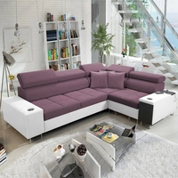 Narożnik z funkcją spania Dafni II wrzosowy / biały prawostronny velvet narożnik z pojemnikiem na pościel szuflada z pełnym wysuwem