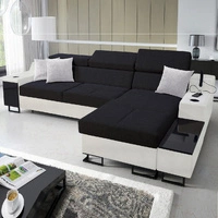 Narożnik z funkcją spania Alcamo czarny / biały prawostronny elegancki narożnik z dostawką praktyczna szuflada w boczku mebla