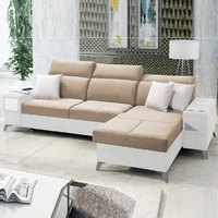 Narożnik z funkcją spania Alcamo jasny brąz / biały prawostronny elegancki narożnik z dostawką praktyczna szuflada w boczku mebla