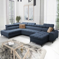 Narożnik z funkcją spania Bolmso VI niebieski prawostronny wygodny narożnik z regulowanymi zagłówkami dekoracyjne pikowania na siedzisku