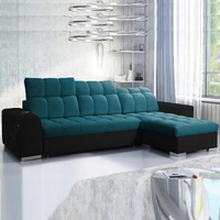 Narożnik z funkcją spania Luigi turkusowy / czarny prawostronny narożnik z dwoma pojemnikami na pościel tkanina o ciekawej strukturze
