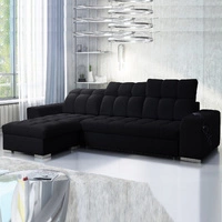 Narożnik z funkcją spania Elgin czarny lewostronny narożnik z regulowanymi zagłówkami praktyczne szuflady w boczkach mebla