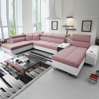 Narożnik z funkcją spania Dafni V indyjski róż / biały prawostronny velvet wygodny i komfortowy narożnik z regulowanymi zagłówkami