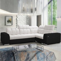 Narożnik z funkcją spania Luigi II jasny beż / czarny prawostronny komfort podczas codziennego wypoczynku narożnik z pojemnikiem na pościel