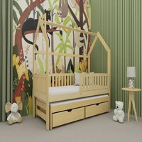 Łóżko dziecięce Miki 70x160 cm sosnowe łóżko 2 osobowe wysuwane do pokoju dziecka łóżko domek wykonane z litego drewna sosnowego