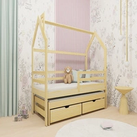 Łóżko dziecięce Chip 70x140 cm sosnowe drewniane łóżko domek z pojemnymi szufladami łóżko 2 osobowe wysuwane do pokoju dziecka