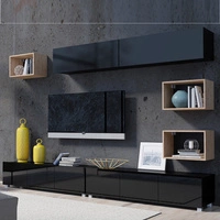 Meblościanka Apulia XXXI czarny połysk / dąb artisan wyjątkowo stylowa meblościanka proste bryły wpisujące się w każde wnętrze