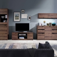 Meblościanka Simi GB dąb artisan / czarny klasyczna forma mebli wykonanie z wysokiej jakości płyty laminowanej idealna meblościanka do salonu