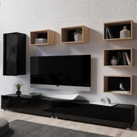 Meblościanka Apulia XXXVII czarny połysk / dąb artisan wyjątkowo stylowa meblościanka proste bryły wpisujące się w każde wnętrze