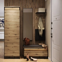 Zestaw mebli do przedpokoju Quant dąb artisan / czarny garderoba do małego przedpokoju meble z subtelnym oświetleniem LED