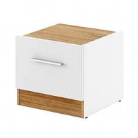 Szafka nocna Dentro biały / dąb stirling prawa elegancka i stylowa szafka z szufladą do sypialni z delikatnie obniżonym blatem
