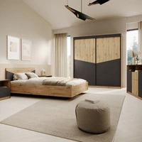 Zestaw mebli do sypialni Atson dąb odwieczny / czarny nowoczesny design komplet mebli do sypialni oryginalny kształt frontów mebli