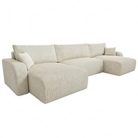 Narożnik z funkcją spania Fiesta U XL beżowy elegancki narożnik do salonu z pojemnikiem na pościel sztruksowa tkanina