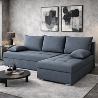 Narożnik z funkcją spania Fasti Bis granatowy uniwersalny narożnik z pojemnikiem na pościel gwarancja najwyższego komfortu