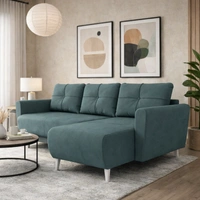 Kanapa rozkładana Zoe butelkowa zieleń funkcjonalna sofa o minimalistycznym designie pojemnik na pościel miękka tkanina typu plusz