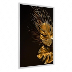 Plakat złoty liść palmowy 70x100 plakat w ramie precyzyjny wydruk ze stylową grafiką doskonała dekoracja do salonu lub sypialni