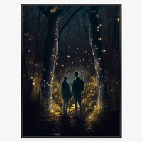 Plakat magiczny las nocą 70x100 plakat w ramie precyzyjny wydruk ze stylową grafiką doskonała dekoracja do salonu lub sypialni