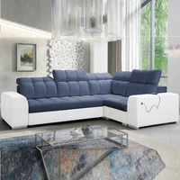Narożnik z funkcją spania Luigi II niebieski / biały prawostronny komfort podczas codziennego wypoczynku narożnik z pojemnikiem na pościel