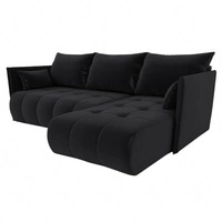 Narożnik z funkcją spania Selva czarny uniwersalny narożnik z pojemnikiem na pościel wykonany z wytrzymałej plecionej tkaniny