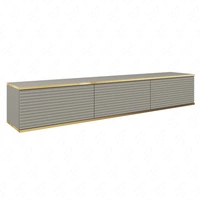 Szafka RTV wisząca Luxury 175 cm szara zachwyci miłośników eleganckich aranżacji korpus zwieńczony złotą listwą stylowy ryflowany front
