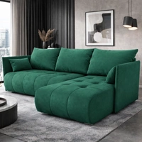 Narożnik z funkcją spania Selva butelkowa zieleń uniwersalny narożnik z pojemnikiem na pościel komfortowa tkanina typu plusz