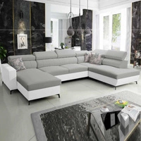 Narożnik z funkcją spania Savona szary popiel / biały lewostronny elegancki narożnik z regulowanymi zagłówkami dekoracyjne przeszycia