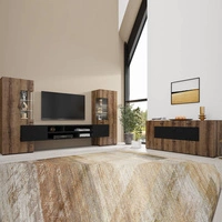 Zestaw mebli Coby dąb monastery / czarny stylowe meble o ciekawym designie czarne uchwyty meblościanka do salonu elementy z szkła hartowanego