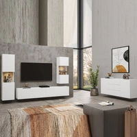 Zestaw mebli Ava biały / dąb wotan z możliwością powieszenia wyjątkowo stylowe meble elementy z szkła hartowanego
