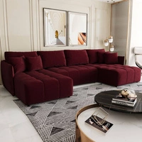 Narożnik z funkcją spania Oroso U bordowy pojemnik na pościel miękka tkanina typu velvet z powłoką hydrofobową ozdobne pikowania