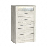 Komoda wysoka Indiana 76 cm kraft biały elegancka stylistyka komody z szufladami ozdobna deska na froncie komody oświetlona LED