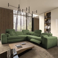 Narożnik z funkcją spania Tesalia VIII zielony prawostronny komfortowy narożnik do salonu z innowacyjną funkcją przesuwanego oparcia