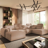 Narożnik z funkcją spania Cantare VIII ceglasty lewostronny gustowny narożnik z regulowanymi zagłówkami pojemniki na pościel