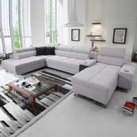 Narożnik z funkcją spania Cetara II kremowy lewostronny stylowy design przesuwane oparcia regulowane zagłówki i pojemnik na pościel