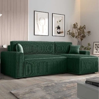 Narożnik z funkcją spania Brandon Bis zielony prawostronny trójwymiarowa tkanina o wyrazistych prążkach pojemnik na pościel