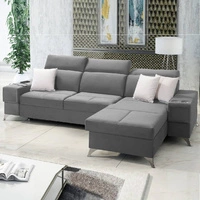 Narożnik z funkcją spania Elgin szary prawostronny narożnik z regulowanymi zagłówkami praktyczne szuflady w boczkach mebla
