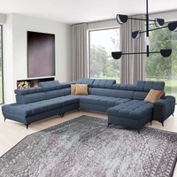 Narożnik z funkcją spania Bolmso X niebieski prawostronny wygodny narożnik do salonu z regulowanymi zagłówkami dekoracyjne pikowania