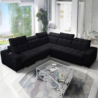 Narożnik z funkcją spania Flavio czarny lewostronny komfortowy elegancki narożnik z dostawką otwierany barek w boczku mebla