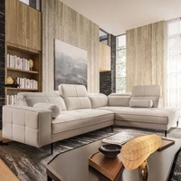 Narożnik Samos beżowy prawostronny nowoczesny design prosta i stylowa bryła wpisująca się w każdą aranżację regulowane zagłówki