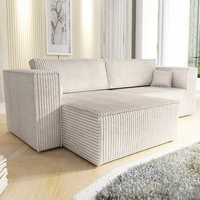 Narożnik z funkcją spania Otton ecru uniwersalny stylowy narożnik sztruksowa tkanina eleganckie wykończenie krawędzi mebla