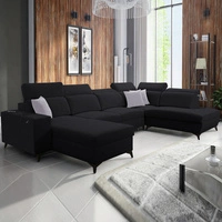 Narożnik z funkcją spania Kelly Sleek VI czarny lewostronny nowoczesny design narożnik do salonu z regulowanymi zagłówkami