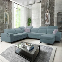Narożnik z funkcją spania Castel błękitny lewostronny komfortowy i stylowy narożnik rozkładany z pojemnikiem na pościel