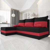 Narożnik z funkcją spania Bowers czarny / czerwony lewostronny narożnik z pojemnikiem na pościel gwarancja najwyższego komfortu