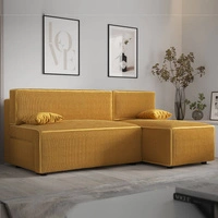Narożnik z funkcją spania Brandon miodowy prawostronny trójwymiarowa tkanina o wyrazistych prążkach pojemnik na pościel