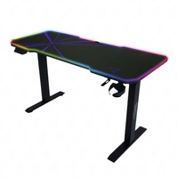 Biurko gamingowe E-Talisman czarny / fioletowy biurko z regulacją wysokości blat w całości pokryty podkładką z oświetleniem LED