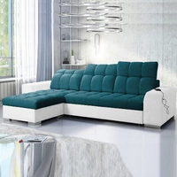 Narożnik z funkcją spania Luigi turkusowy / biały lewostronny narożnik z dwoma pojemnikami na pościel tkanina o ciekawej strukturze